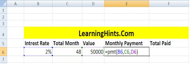 Ok we take an example if take a loan of 50000 thousand rupees from bank and this payment return in monthly installation with in 4 year ( which is 48 Month). So calculate the per month total payment.